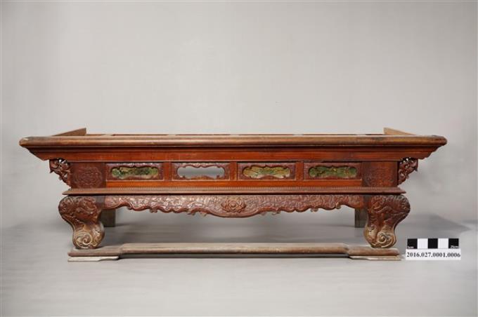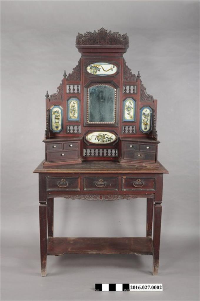 朱漆雕花鑲彩繪玻璃畫梳妝臺