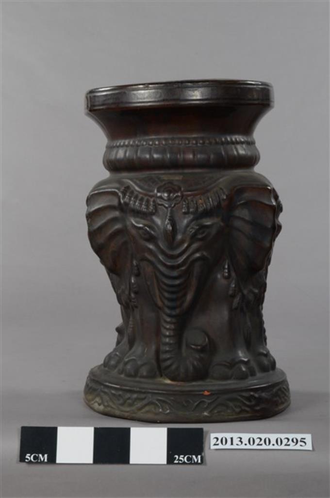 南投窯四象壽紋褐釉圓凳