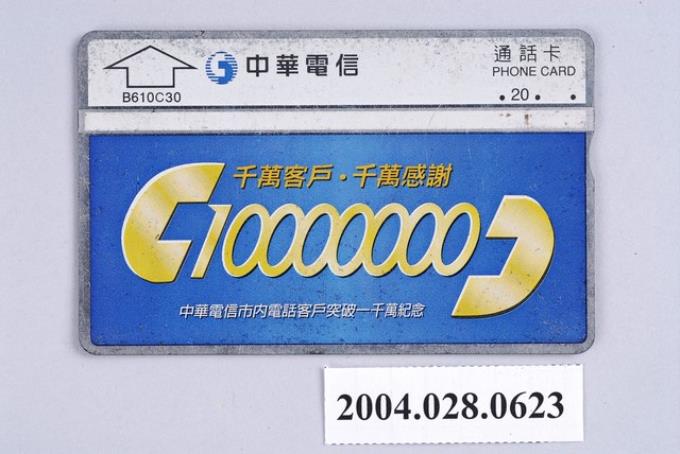 中華電信B610C30中華電信市內電話客戶突破一千萬紀念電話卡