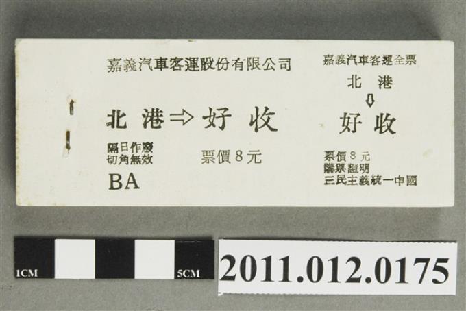 嘉義汽車客運北港至好收全票票本