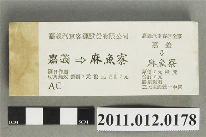 嘉義汽車客運嘉義至麻魚寮全票票本