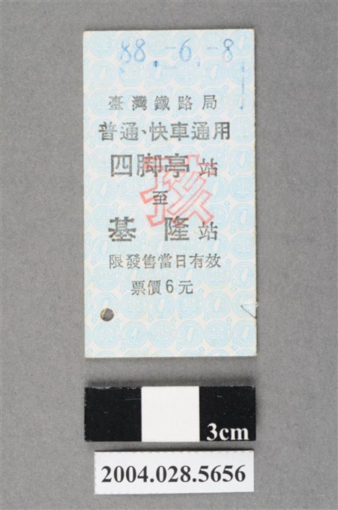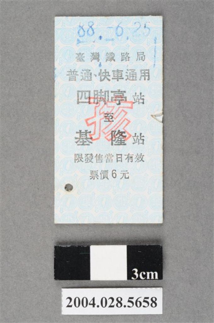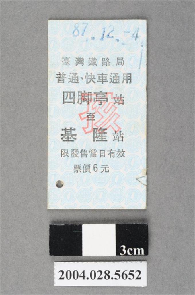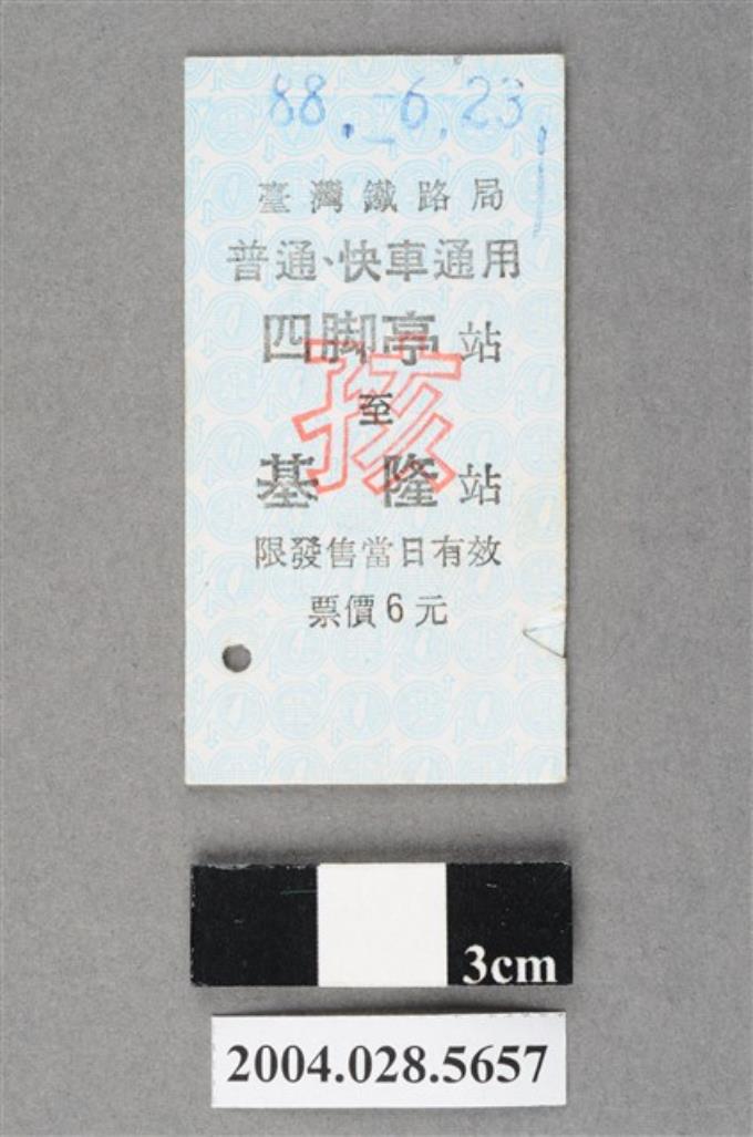 臺灣鐵路局普通及快車通用四脚亭至基隆站孩童票