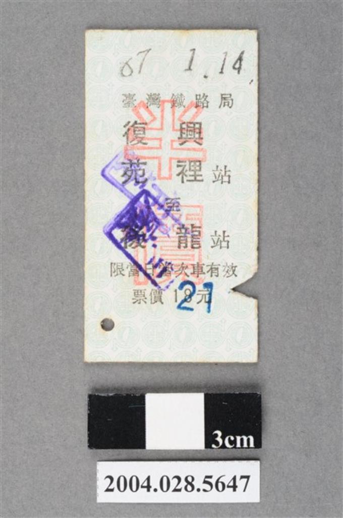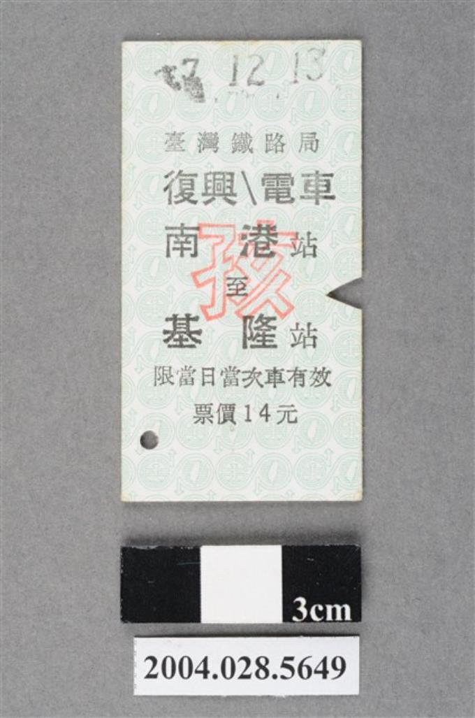 臺灣鐵路局復興電車南港至基隆站孩童票