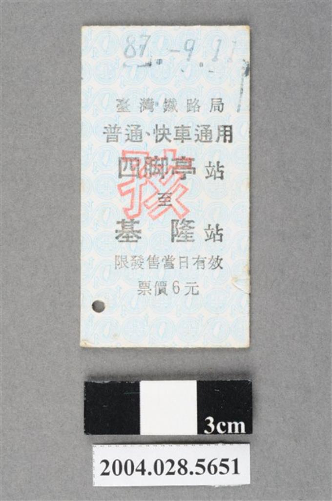 臺灣鐵路局普通及快車通用四脚亭至基隆站孩童票