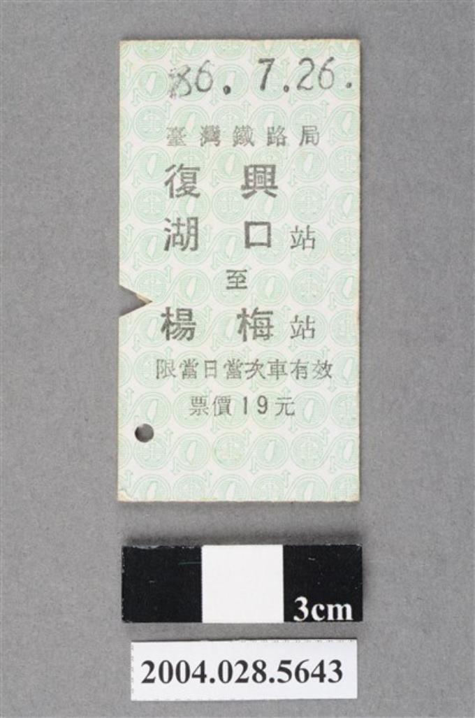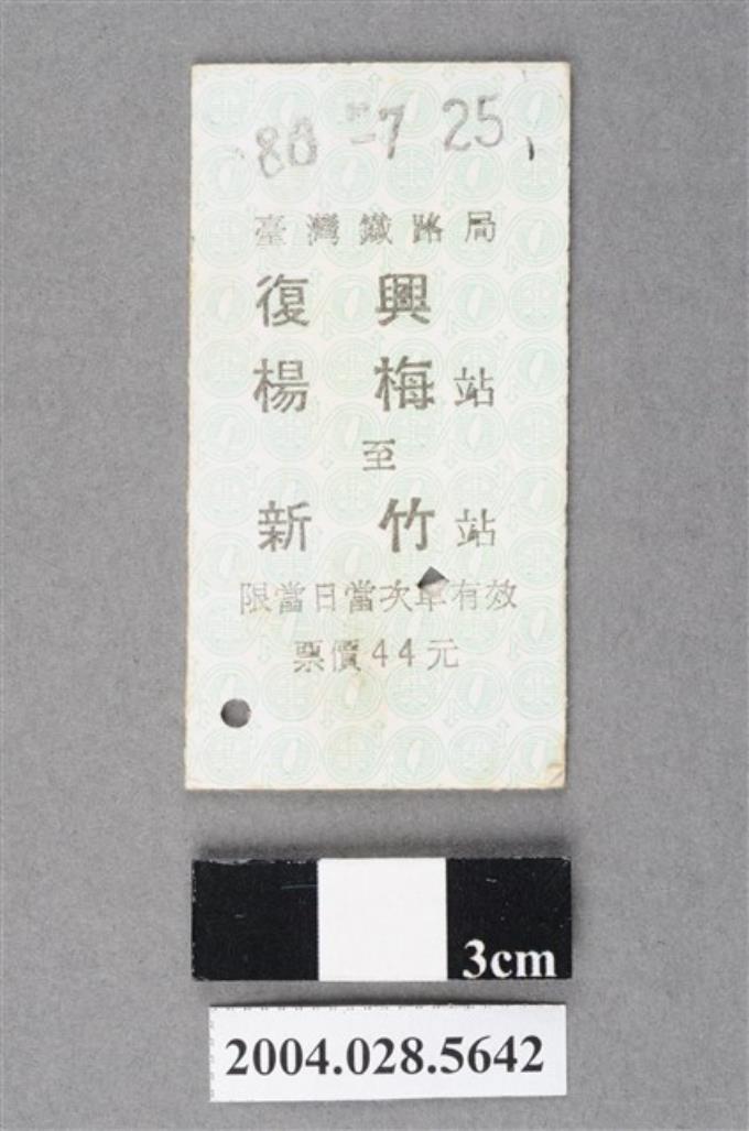 臺灣鐵路局復興號沙鹿至苑裡站車票