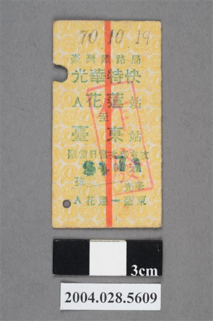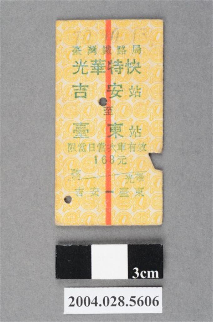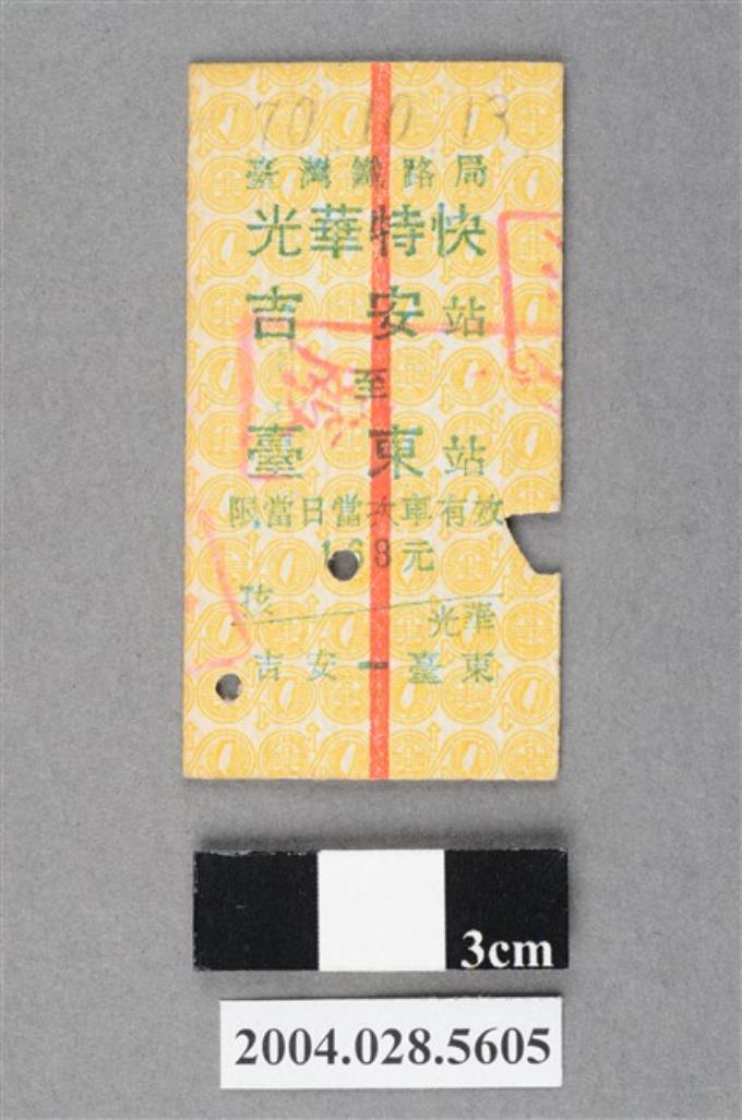 臺灣鐵路局光華特快車吉安至臺東站車票