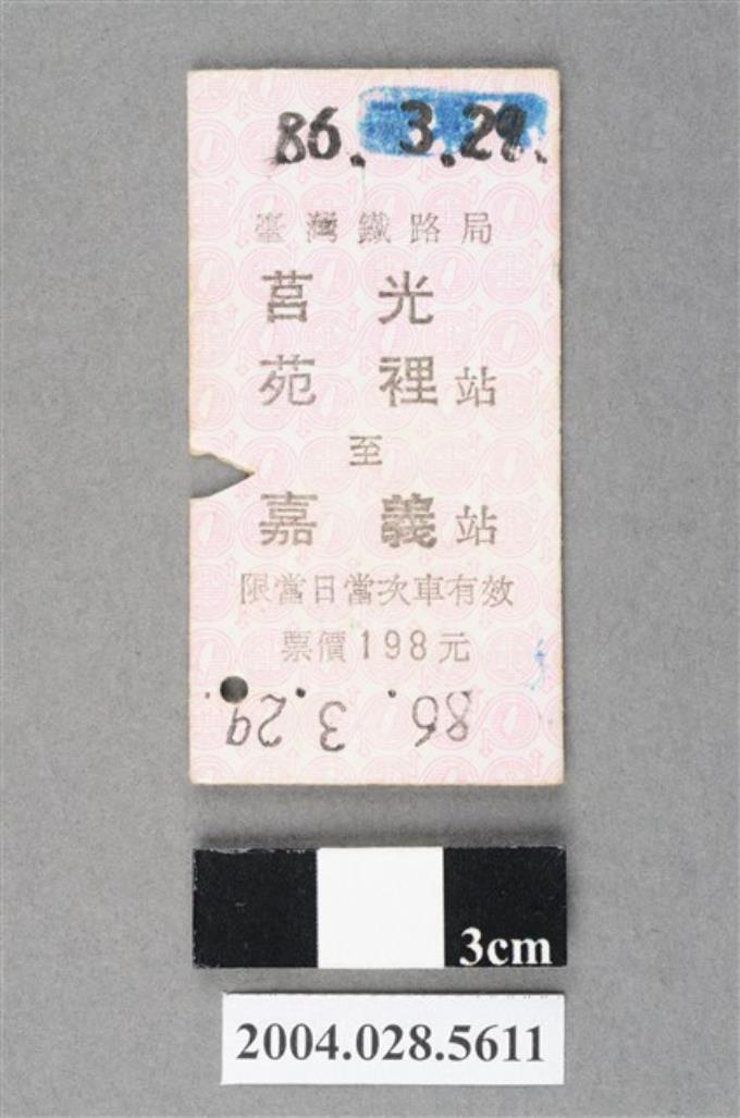 臺灣鐵路局莒光號苑裡至嘉義站車票