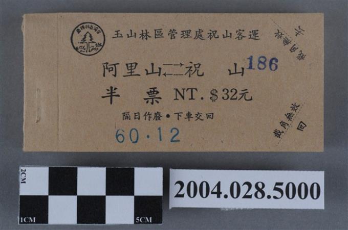玉山林區管理處祝山客運阿里山祝山半票本
