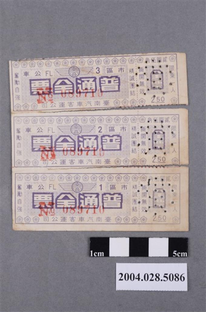 臺南市汽車客運公司市區公車普通車票
