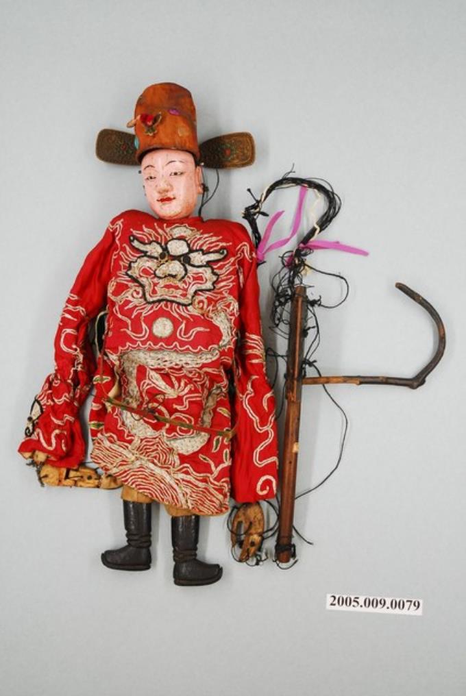 傀儡戲之生角戲偶著紅色蟒袍