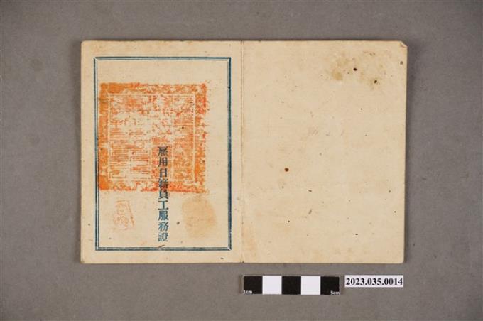 小原三男臺灣織布株式會社雇用日籍員工服務證