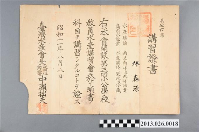 昭和11年第三回小公學校教員水產講習會證書