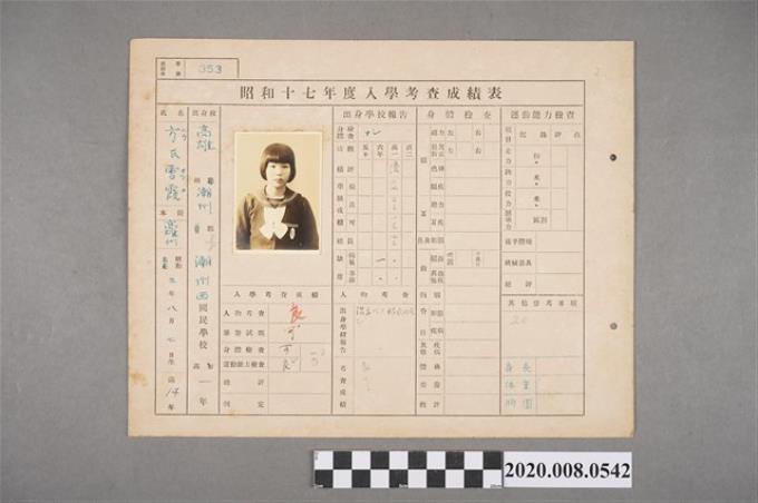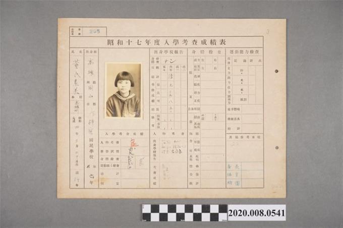 日治時期學校成績通知簿 台中州立彰化高等女學校 楊瓊翠