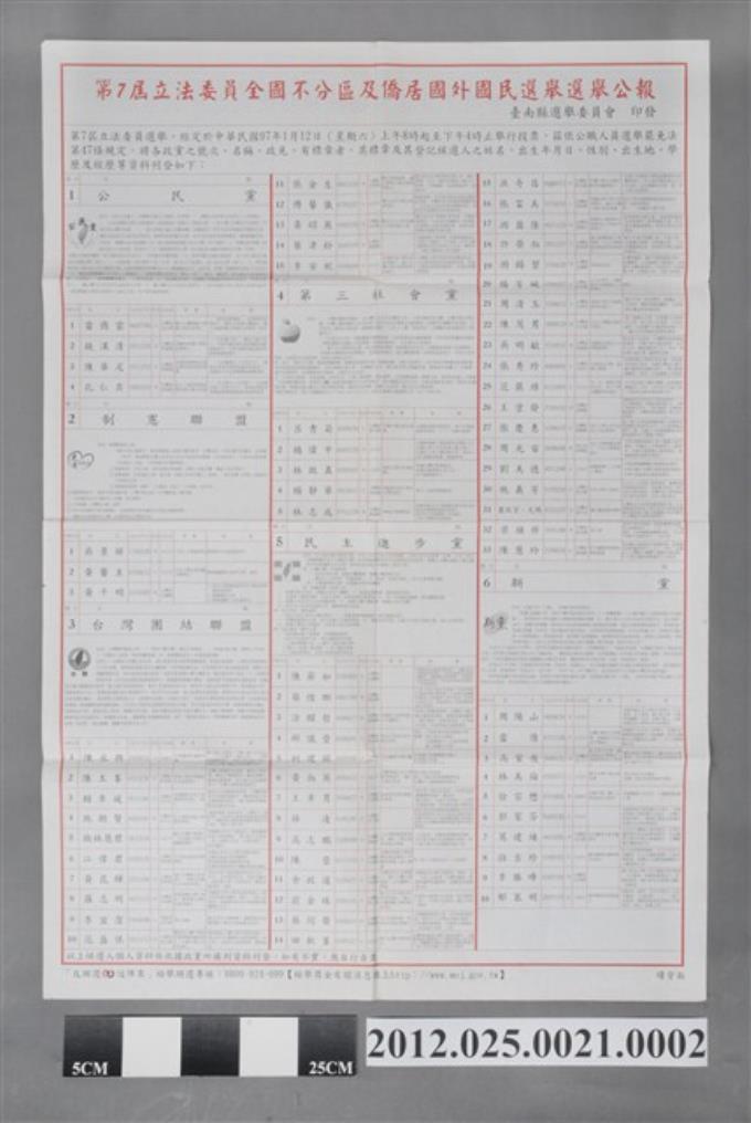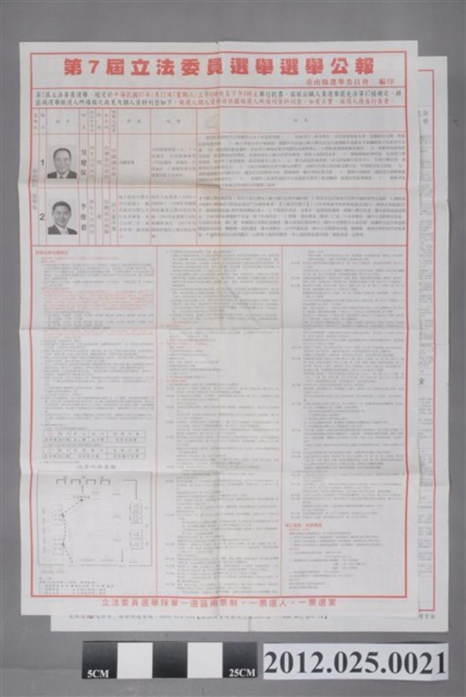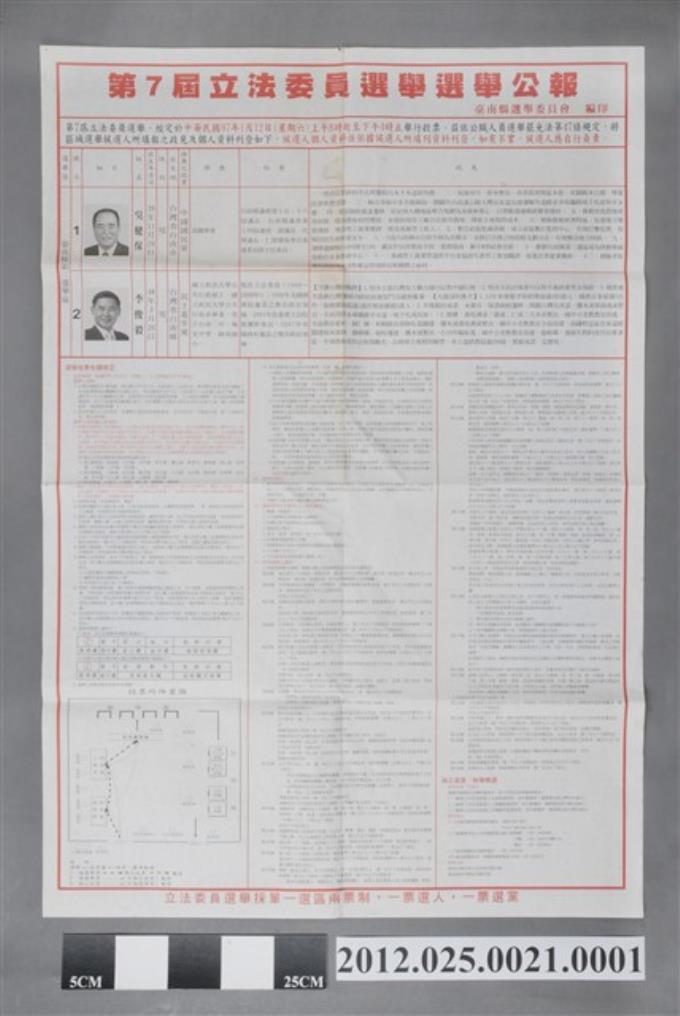 臺南縣選舉委員會印《第7屆立法委員選舉選舉公報》