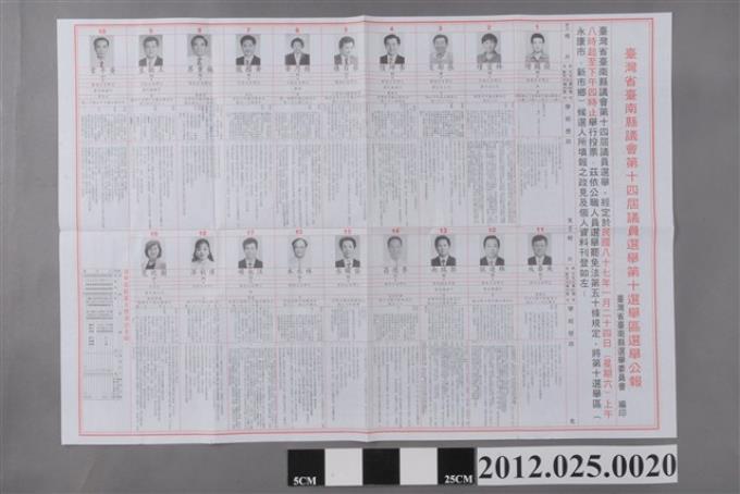 臺灣省臺南縣選舉委員會編印《臺灣省臺南縣議會第14屆議員選舉第10選舉區選舉公報》