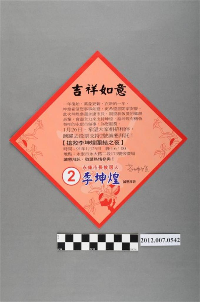 臺灣省臺南市選舉委員會印發《第十任總統副總統選舉選舉公報》