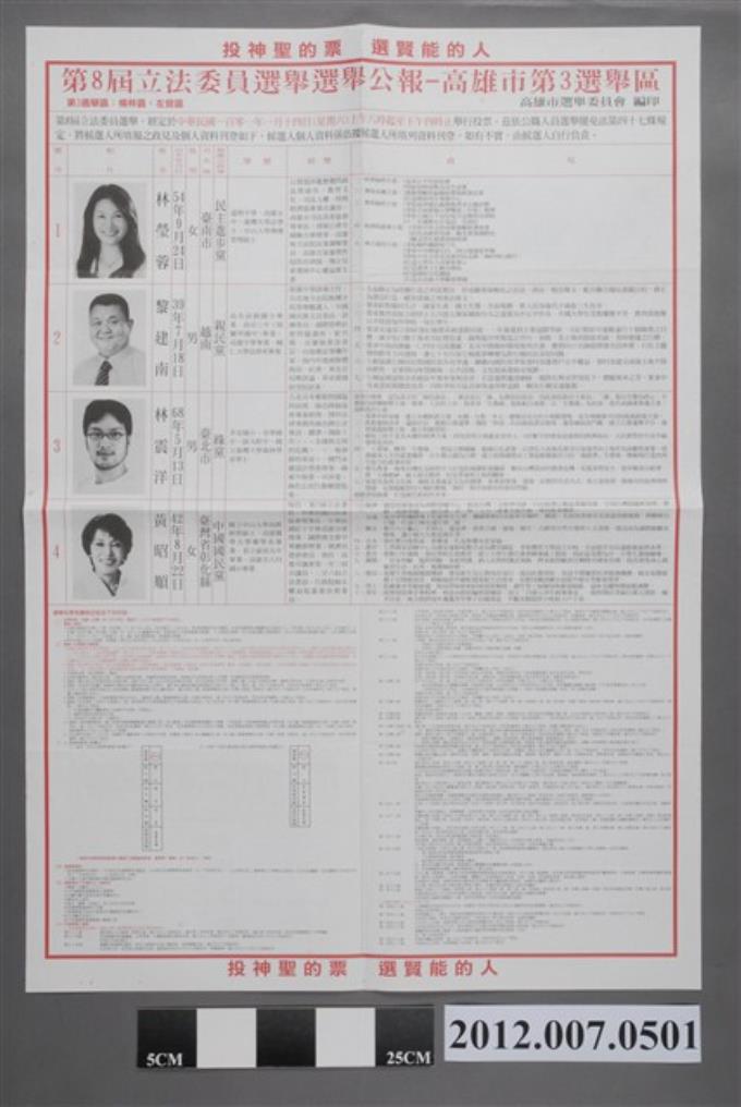 高雄市選舉委員會編印《第8屆立法委員選舉選舉公報第3選舉區(楠梓區、左營區)》