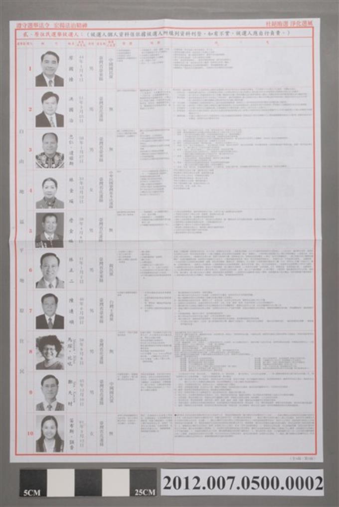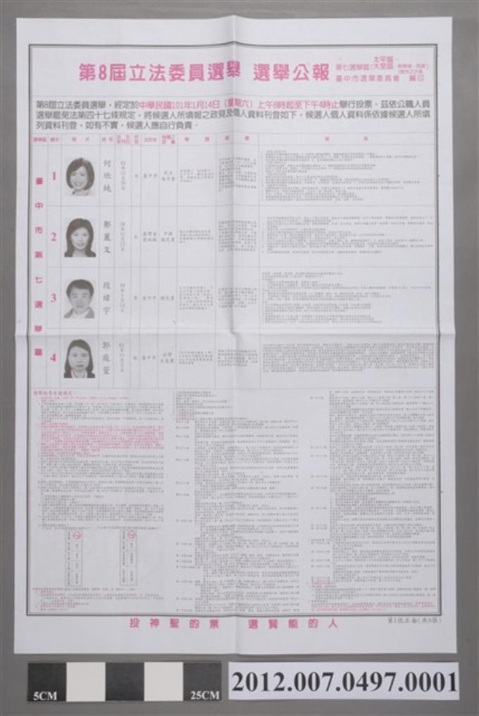 臺中市選舉委員會編印《第8屆立法委員選舉選舉公報第7選舉區(太平區、大里區—除東湖、西湖2里外之25里)》