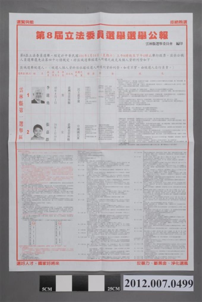 雲林縣選舉委員會編印《第8屆立法委員選舉選舉公報》