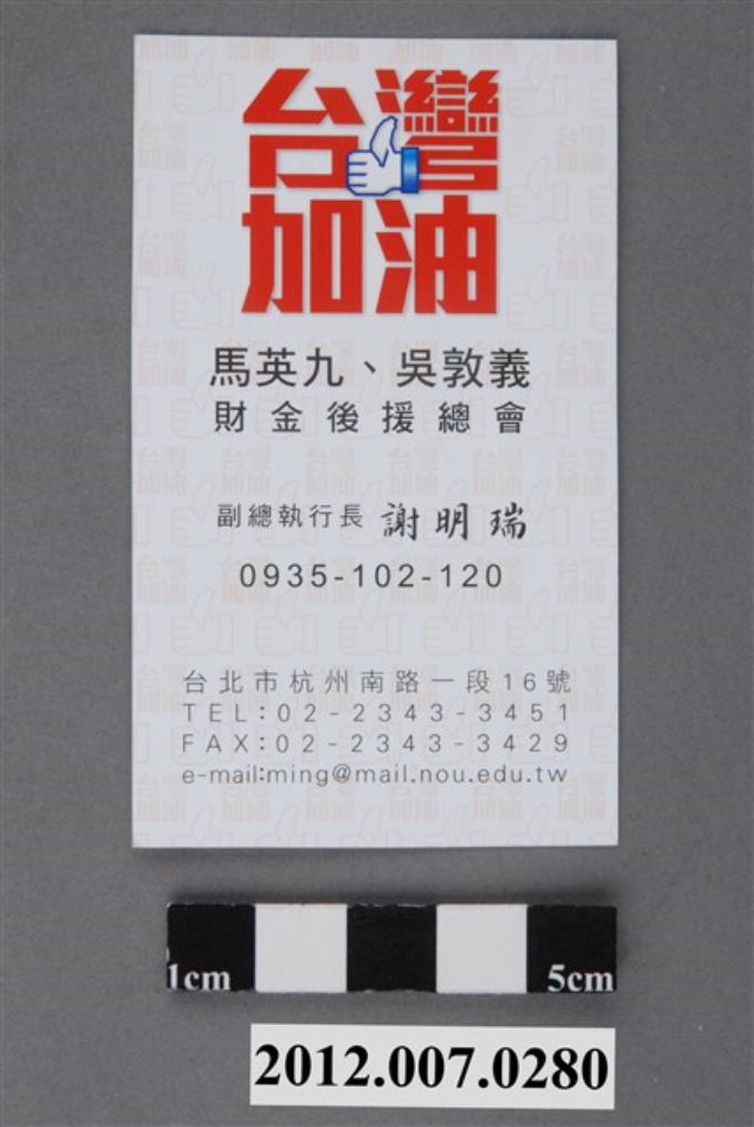 馬英九、吳敦義財金後援總會副總執行長謝明瑞名片