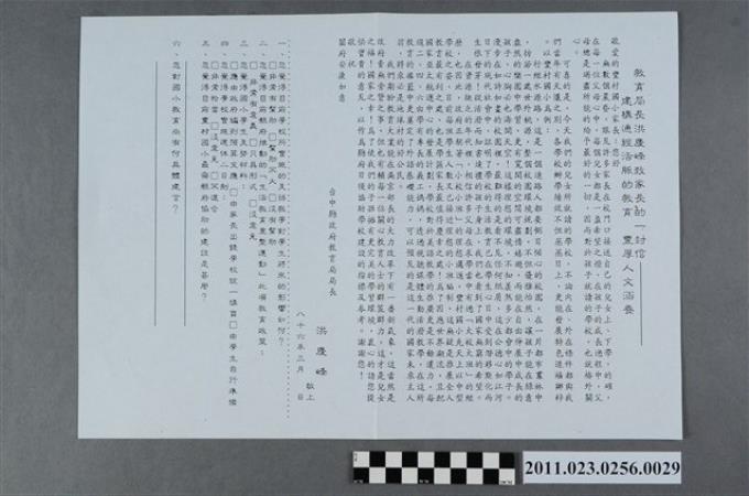 洪慶峰1997年競選文宣「教育局長洪慶峰致家長的一封信:建構通經活脈的教育 豐厚人文涵養」