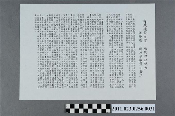 洪慶峰1997年競選文宣「洪慶峰 強力爭取黨內提名」