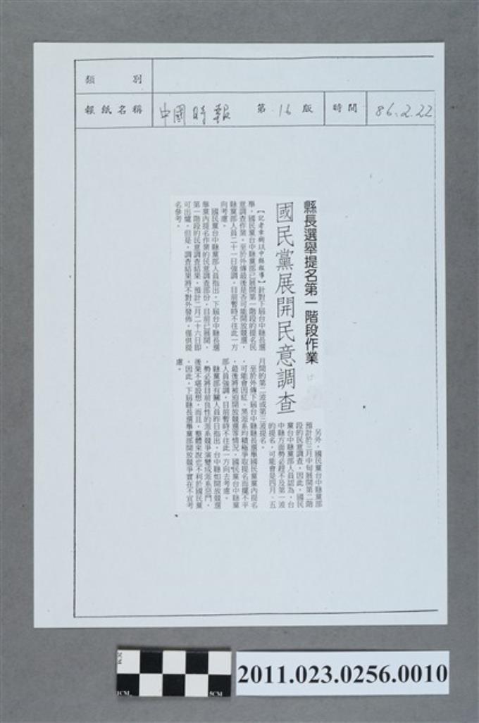 中國時報86年2月22日第16版「國民黨展開民意調查」