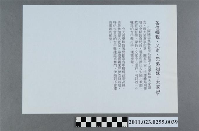 林敏霖1997年提名國民黨臺中縣長候選人競選文宣