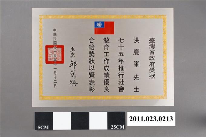 洪慶峰中國廣播公司臺灣廣播電台升任臺中縣教育局長「卓越幹練」紀念銀盤
