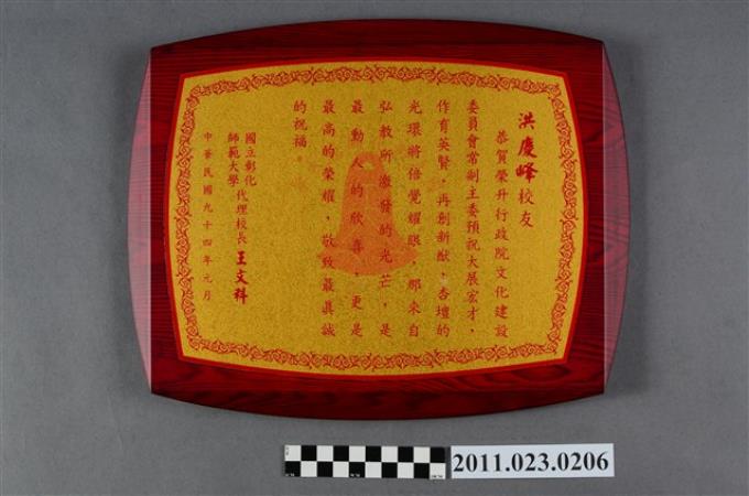 洪慶峰彰化師範大學升任文建會副主委紀念獎牌