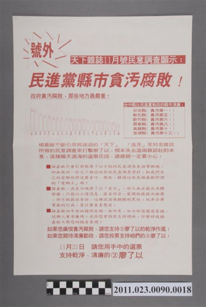 廖了以1993年競選第12任臺中縣長負面文宣傳單「民進黨縣市貪污腐敗」
