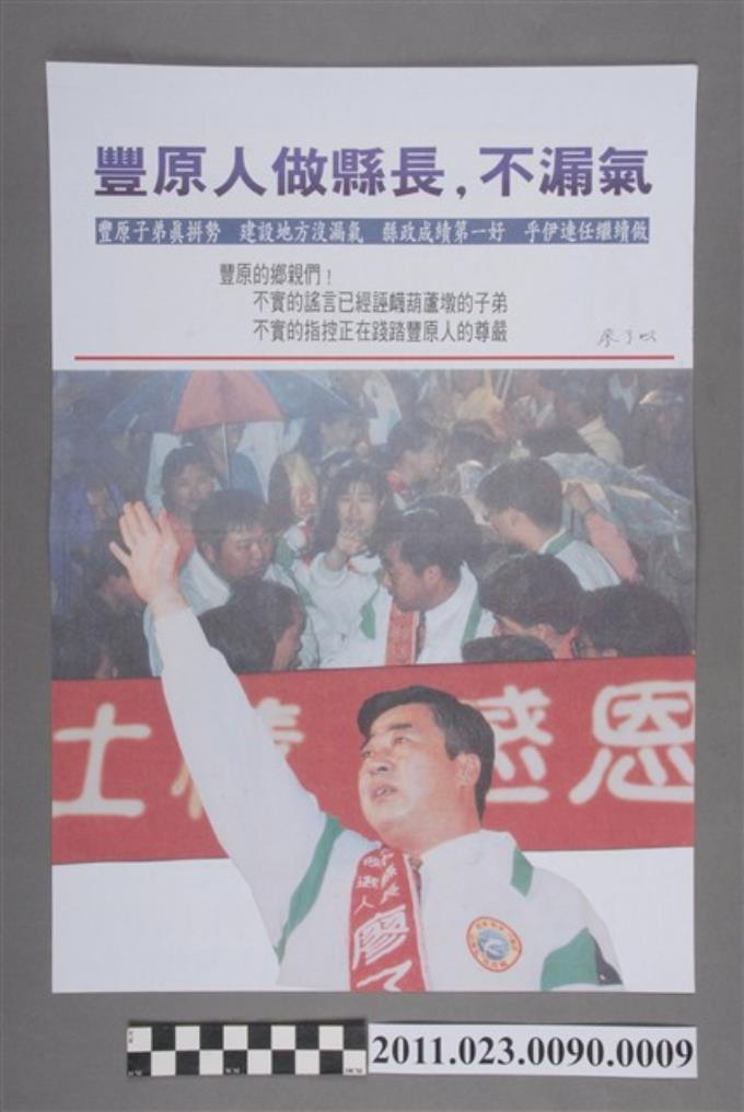 廖了以1993年競選第12任臺中縣長文宣傳單「豐原人做縣長不漏氣」