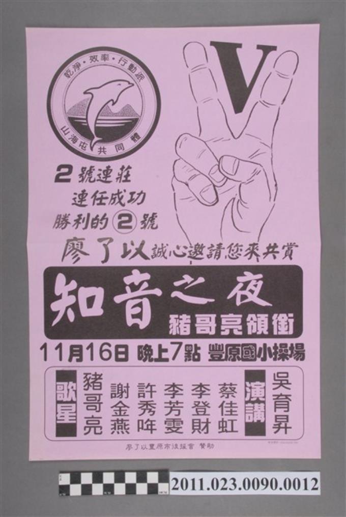 廖了以1993年競選第12任臺中縣長文宣傳單「11月16日知音之夜」