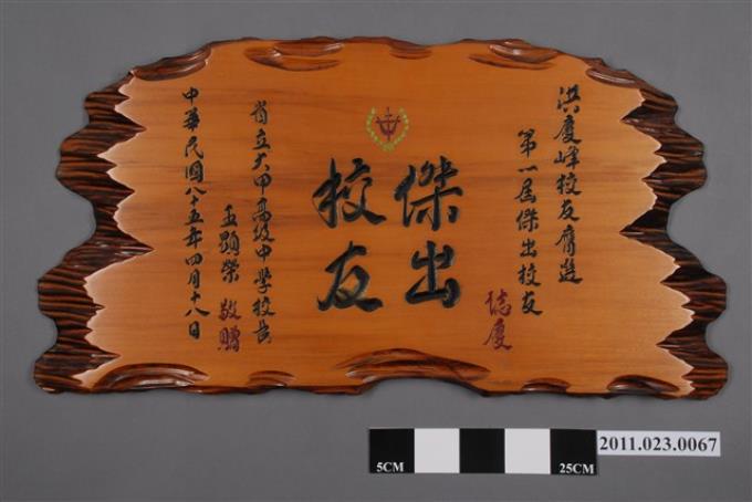 洪慶峰獲大甲高中第一屆傑出校友木匾