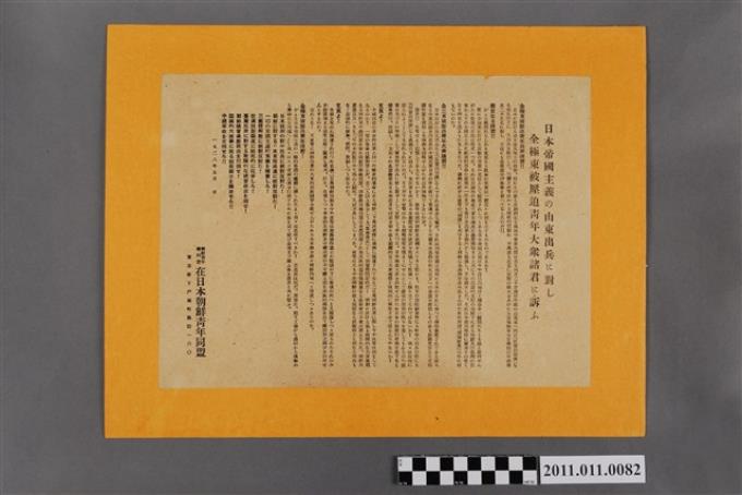 朝鮮青年總同盟在日朝鮮青年同盟印發《日本帝國主義之山東出兵告全遠東被壓迫青年大眾諸君》傳單