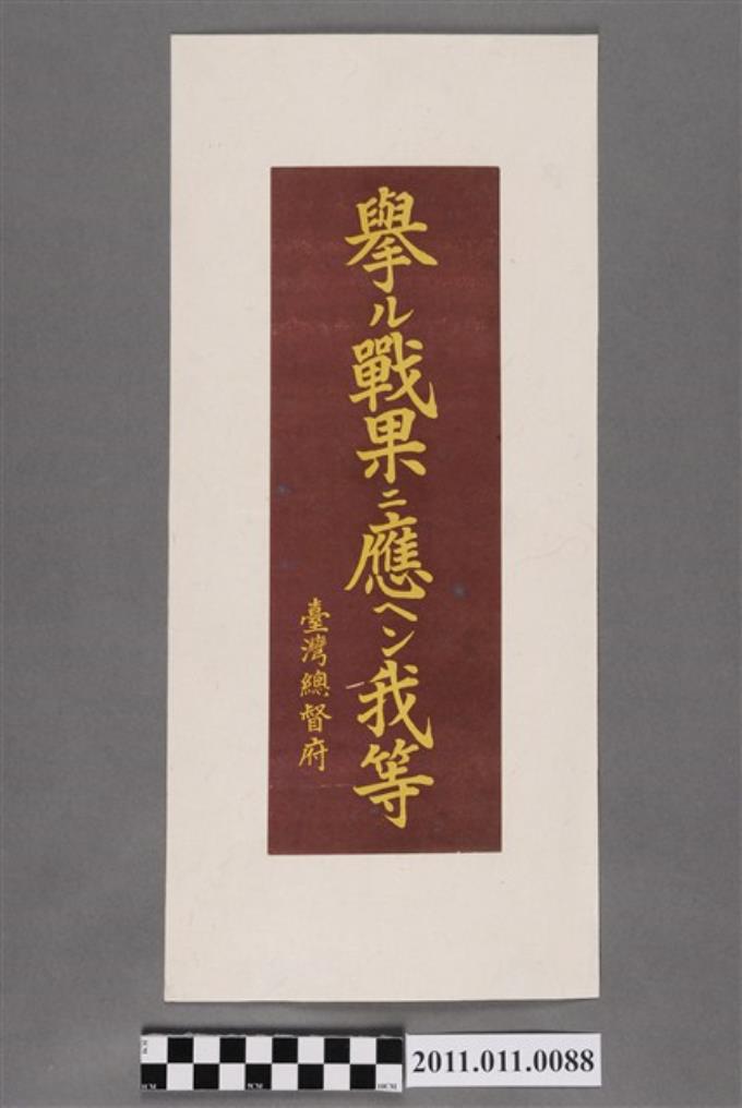 「臺灣總督府戰ヒ拔カン此ノ決戰、働キ拔カン生產陣」標語
