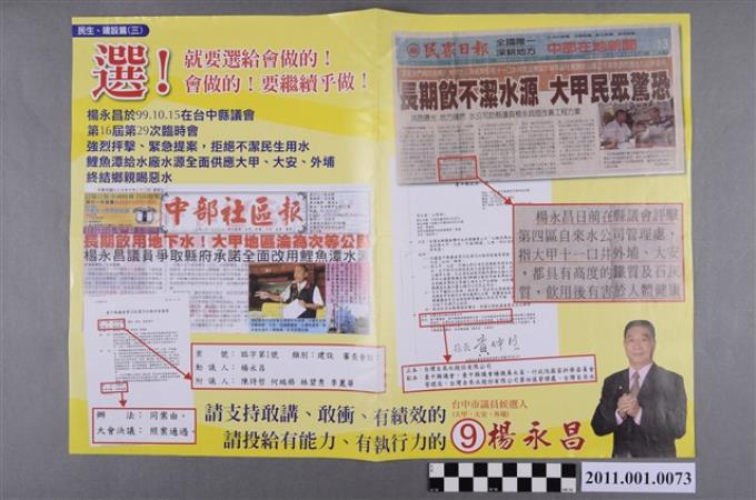 中華民國第1屆臺中市議員候選人楊永昌選舉文宣