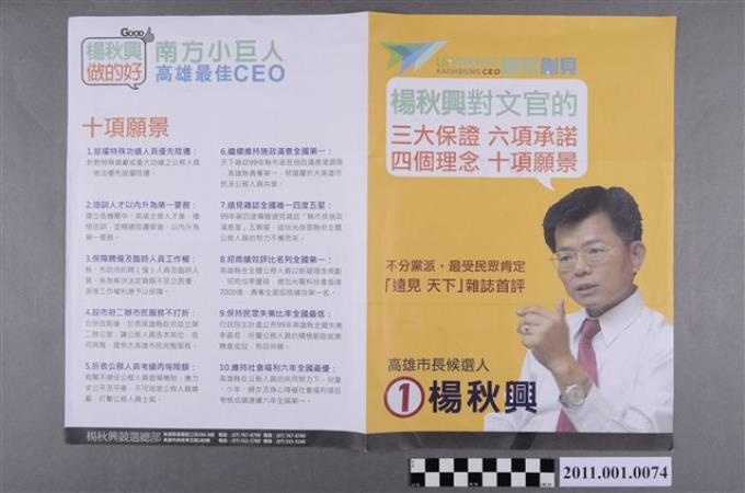 中華民國第1屆高雄市長候選人楊秋興選舉文宣