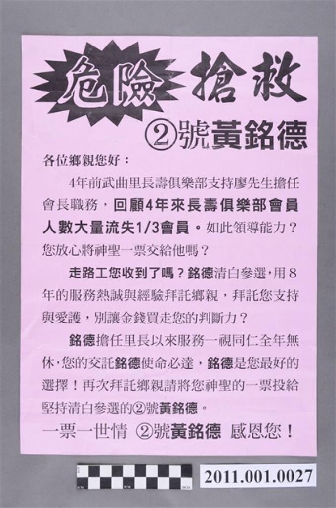 臺中市武曲里里長候選人2號黃銘德選舉文宣