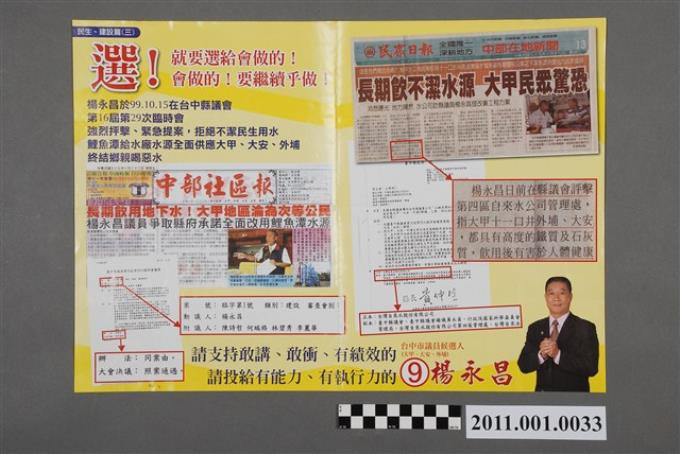 中華民國第1屆臺中市議員候選人楊永昌選舉文宣