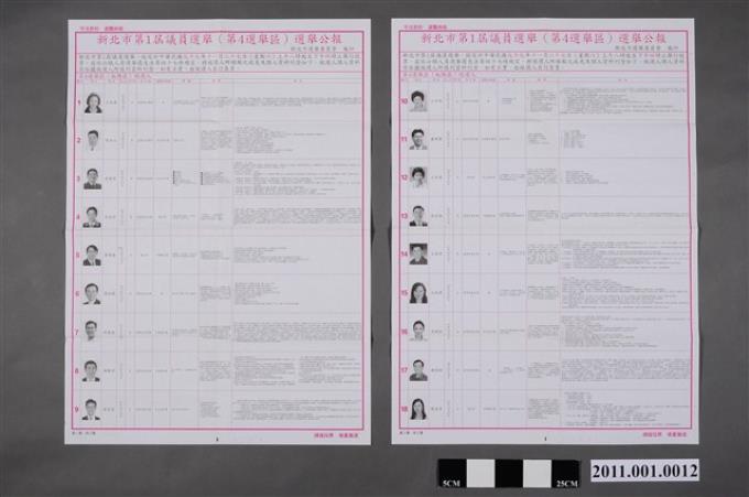 新北市選舉委員會編印《新北市第1屆議員選舉(第4選舉區)選舉公報》第2張