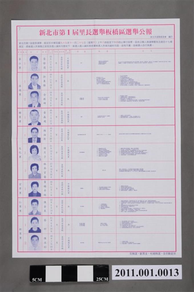 新北市選舉委員會編印《新北市第1屆里長選舉板橋區選舉公報》