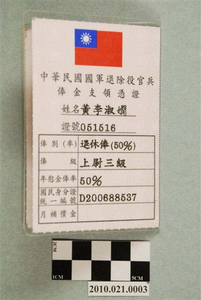 黃李淑嫻中華民國國軍退除役官兵俸金支領憑證