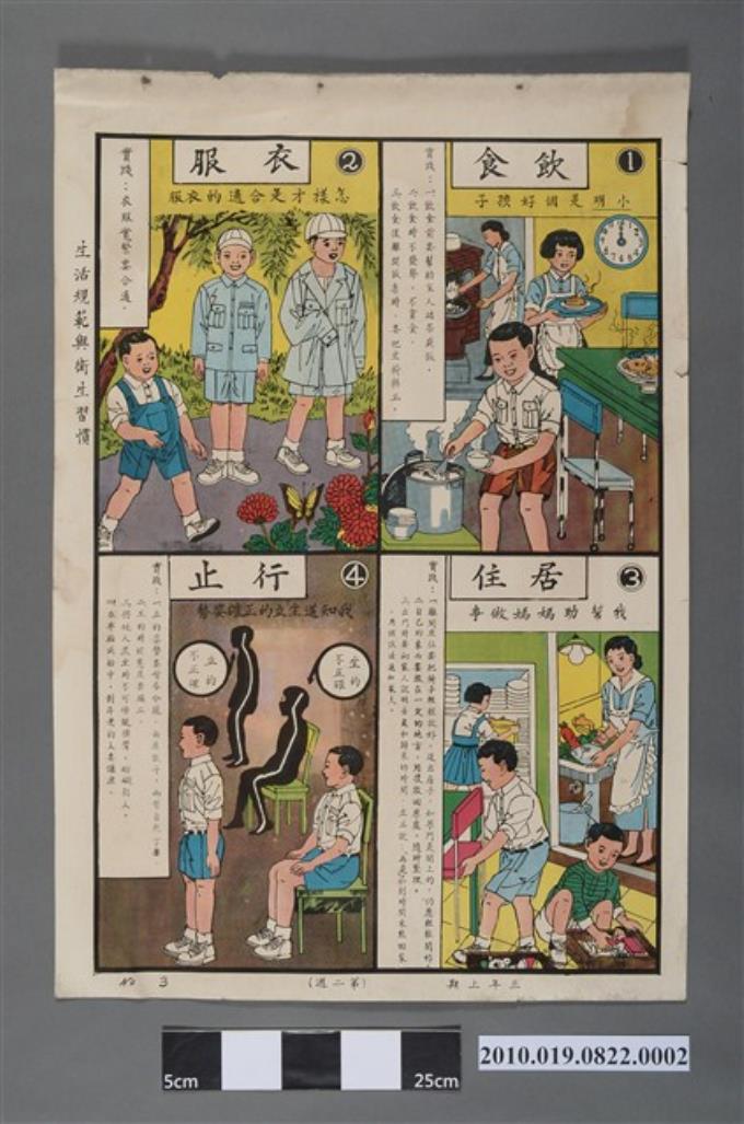 國民學校三年級上學期公民與道德課程教學掛圖〈第二週飲食衣服居住行止〉