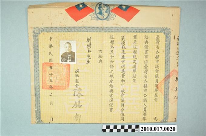 中國國民黨交通事業黨部委員會頒發縣市長輔選獎狀