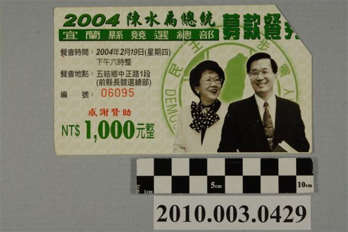2004年2月19日陳水扁總統宜蘭縣造勢晚會1000元募款餐券