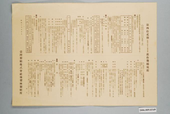 臺灣製糖株式會社後壁林製糖所製第42期蔗作獎勵規程