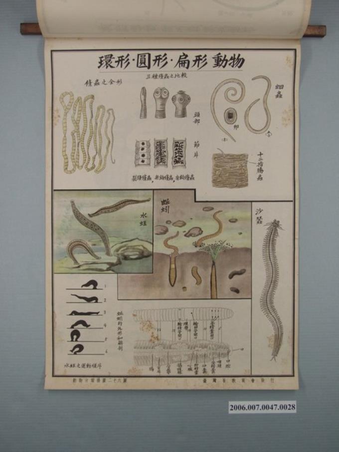 臺灣省教育會發行《動物分類掛圖》之環形和圓形與扁形動物