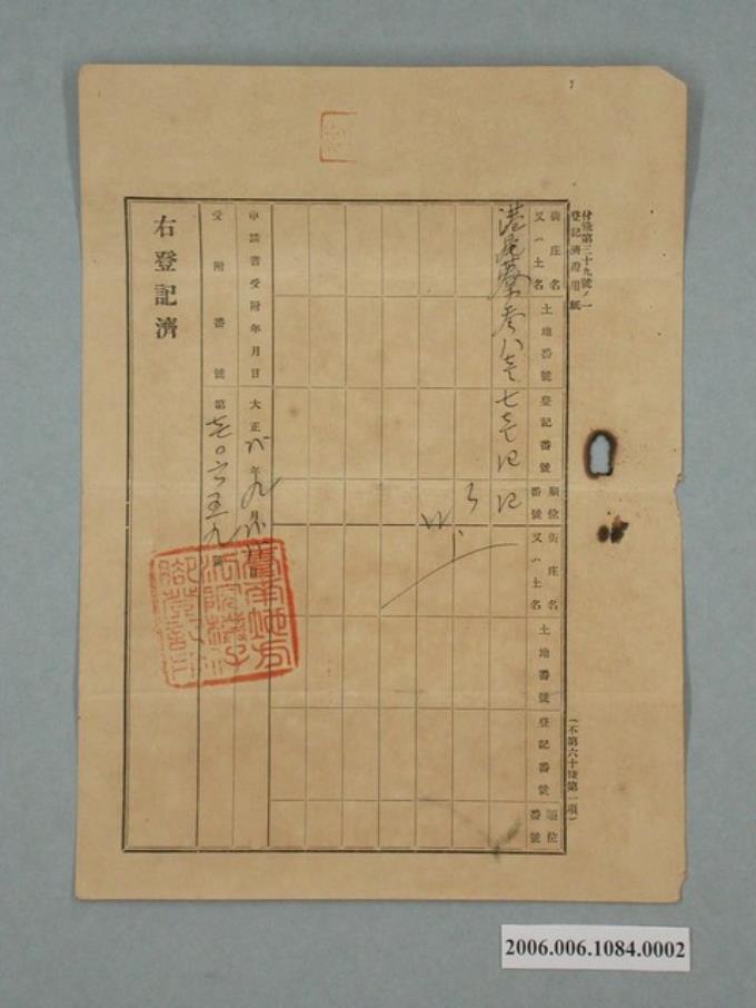 大正2年陳聚等立杜賣盡根契登記完成證明書
