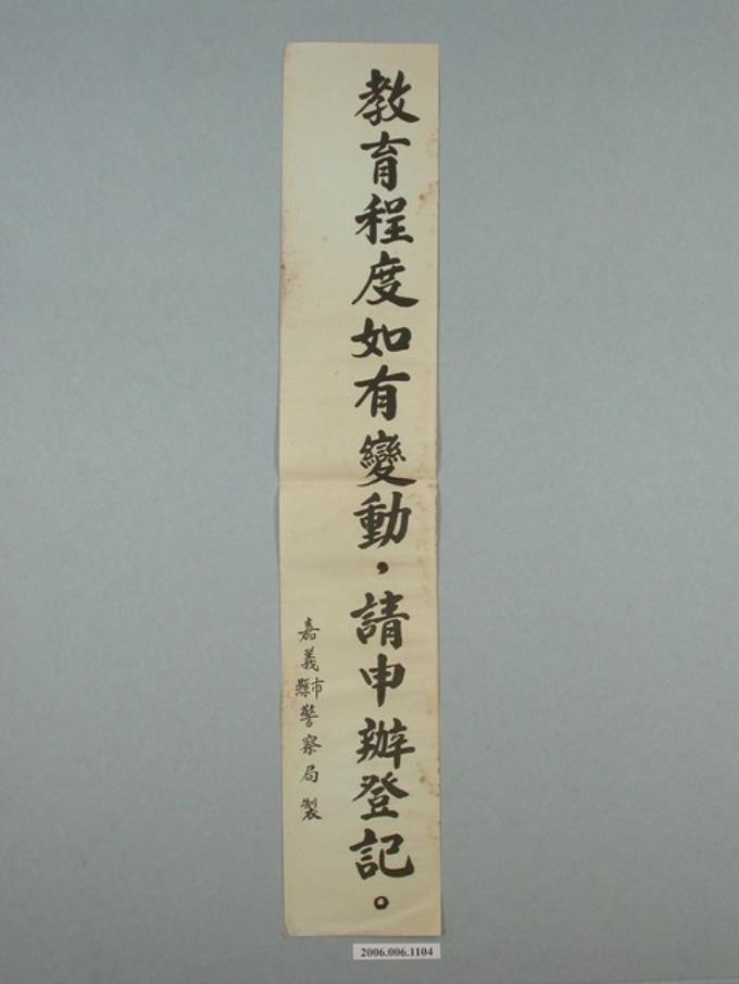 嘉義縣市警察局製「教育程度如有變動,請申辦登記。」標語
